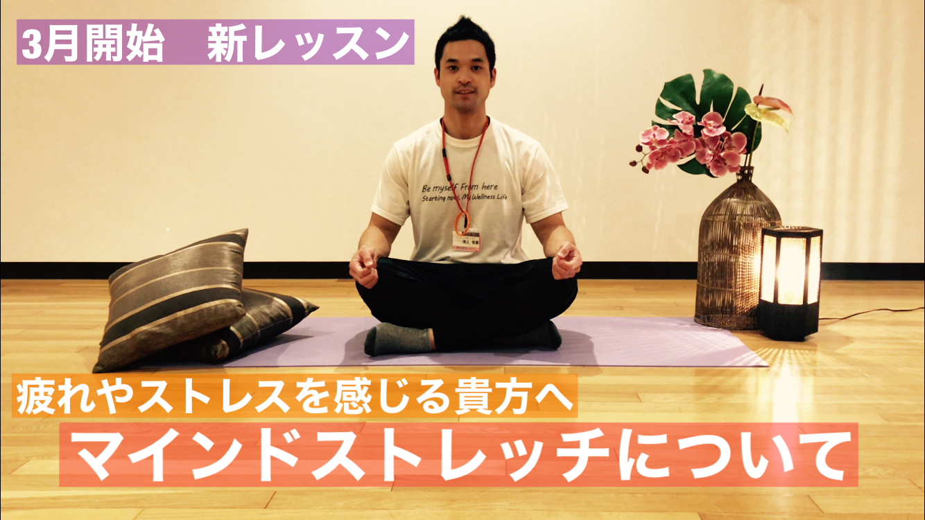 日々、仕事や家事で忙しい毎日を送っていると、疲れやストレスを感じる方が多いのではないでしょうか。3月開始の新プログラム「マインドストレッチ」は、そんな貴方の身体と心に少しの休息を与える内容となっておりますので、皆様のご参加お待ちしております。